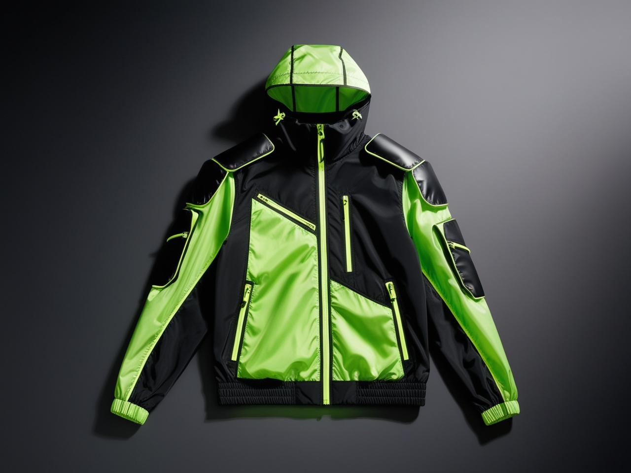 The green and black windbreaker is a perfect example of this blend of style and technology. It uses modern fabrics that are lightweight and protective, making it ideal for both sports and casual wear.